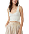 A lightly colored FP Movement bra top, featuring unique textured patterning and a cutout at the racer back.